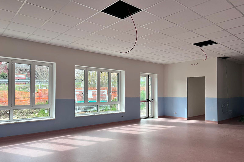 Procedono a Vitorchiano, in località Pallone, i lavori per la costruzione della nuova scuola dell’infanzia e del nido comunale. L’edificio, sviluppato interamente su un unico livello, è destinato a potenziare la logistica scolastica del territorio, offrendo strutture moderne e servizi all’avanguardia. Conclusa lo scorso anno la fase strutturale, l’intervento si concentra ora sulle opere di finitura come tinteggiature, posa dei rivestimenti e pavimentazioni. A seguire, si procederà con l’installazione delle pareti ventilate colorate che, oltre a caratterizzare l’estetica dell’immobile, ne garantiranno l’efficienza energetica, insieme alla coibentazione ad alte prestazioni di tramezzature e coperture.