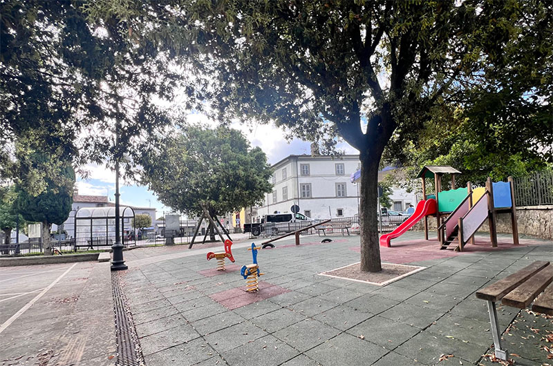 Riaperti a Vitorchiano i giardinetti di Piazza Umberto I con i giochi per bambini, una volta completata la nuova pavimentazione. Dopo le attività di pulizia e scavo iniziale, avviate il 14 aprile 2025, e la successiva realizzazione del fondo e massetto in cemento, è stata eseguita la posa del nuovo fondo colorato e anti-shock.