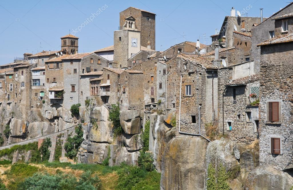 Abitato fin dall’età del bronzo, in epoca medioevale crebbe d’importanza e architettonicamente si fuse con la rupe di peperino, una roccia vulcanica che caratterizza il territorio. Le case, affacciate sull’oblio e costruite con lo stesso materiale della rupe, descrivono con tetti, torri e campanili il profilo di questo borgo antropomorfo, un luogo mitologico sospeso sulla forra che lo circonda tra realtà e fantasia.