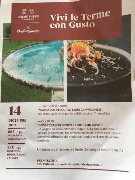 Si è svolta nella mattina dell’ 11 dicembre, presso l’elegante salone delle Terme Salus Resort &Spa, la conferenza stampa per la presentazione di Vivi le terme con Gusto l’evento programmato per il 14 dicembre realizzato dalla struttura termale in collaborazione con Confartigianato Viterbo.