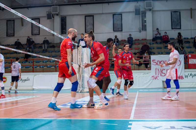 Ancora senza l’infortunato Pollicino, coach Beltrame si affida a capitan Buzzelli opposto, Leoni alzatore, Ferrini e Pasquini schiacciatori, Diouf, Antonini, Buzzao e Stoppelli in continua rotazione come centrali.