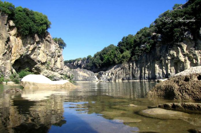 Camminando lungo il percorso panoramico che costeggia i bordi dell’alto pianoro, si scenderà nel fresco bosco di lecci e querce fino ad arrivare al laghetto del Pellicone (nella foto) formato dal fiume Fiora con le scure rocce vulcaniche e le suggestive “barbe” di travertino, il calcare depositato dallo scorrere delle acque che creano uno scenario unico.