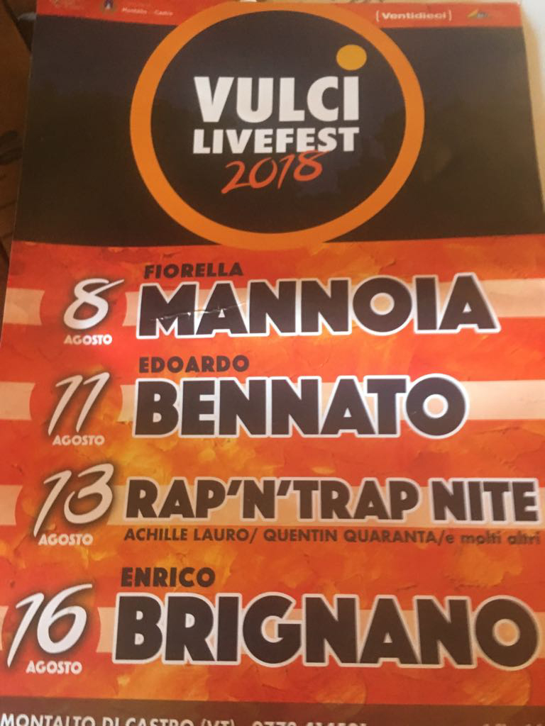 Vulci LiveFest 2018: Mannoia, Bennato, Rap’N’Trap Nite, Brignano