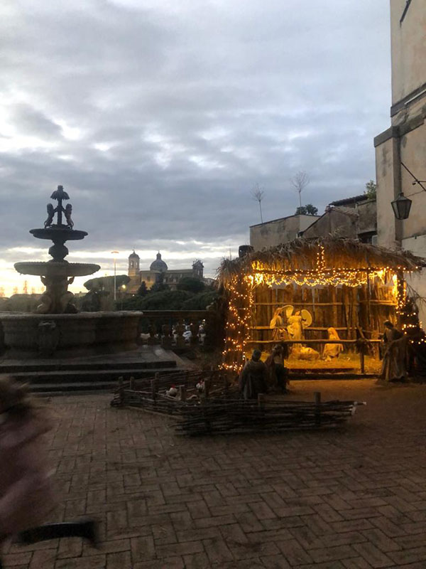 ma vogliamo spendere una parola per il delizioso presepe nel cortile di Palazzo dei Priori a Viterbo. Un’ambientazione divisa tra magnifico panorama, tramonti e Natività.