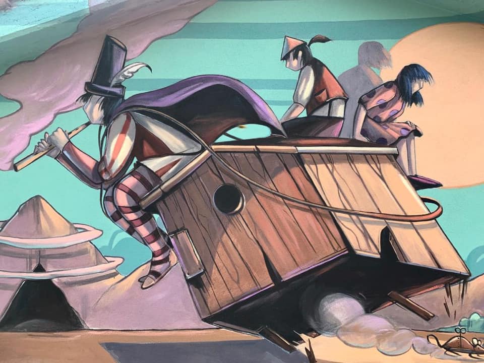 Sant’Angelo il paese delle fiabe: dove un altro murale si aggiunge al Paese delle Fiabe grazie all’artista Alessandra Carloni e al proprietario Roberto Casciani: Il pifferaio magico di Hamelin, fiaba dei fratelli Grimm. fb S. Angelo “Il Paese delle Fiabe”