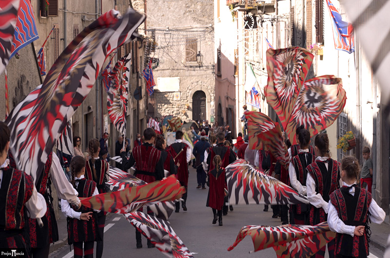Nella foto cover di projec Tuscia, un momento del corteo storico di Bomarzo, durante i festeggiamenti in onore di di Sant’Anselmo
