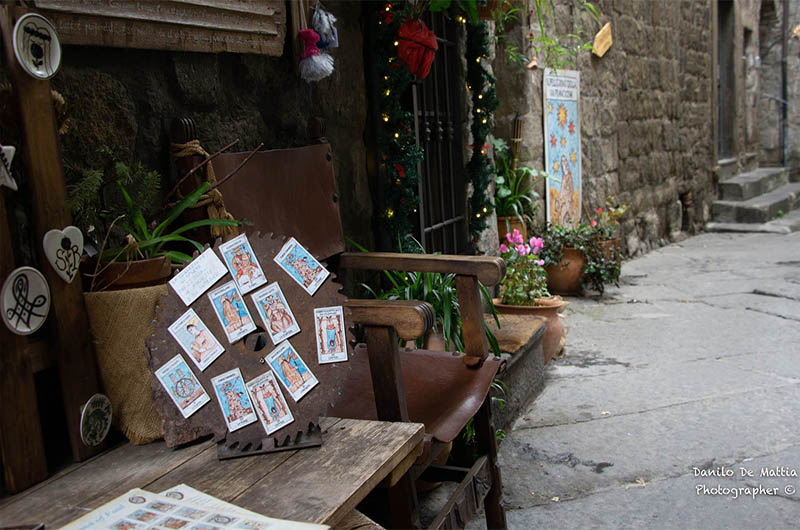 Foto cover di Danilo De Mattia, i Tarocchi dell’artista Cinzia Chiulli in esposizione nel suo laboratorio d’arte a San Pellegrino. Un buon auspicio per la Tuscia.