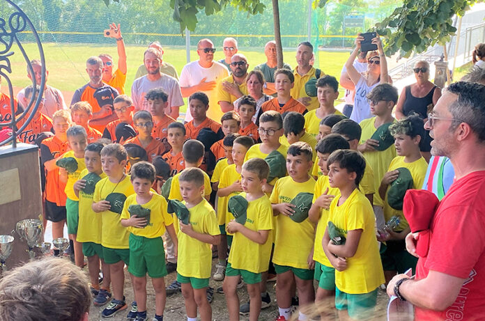 I ragazzi durante l'inno al torneo di Cupramontana